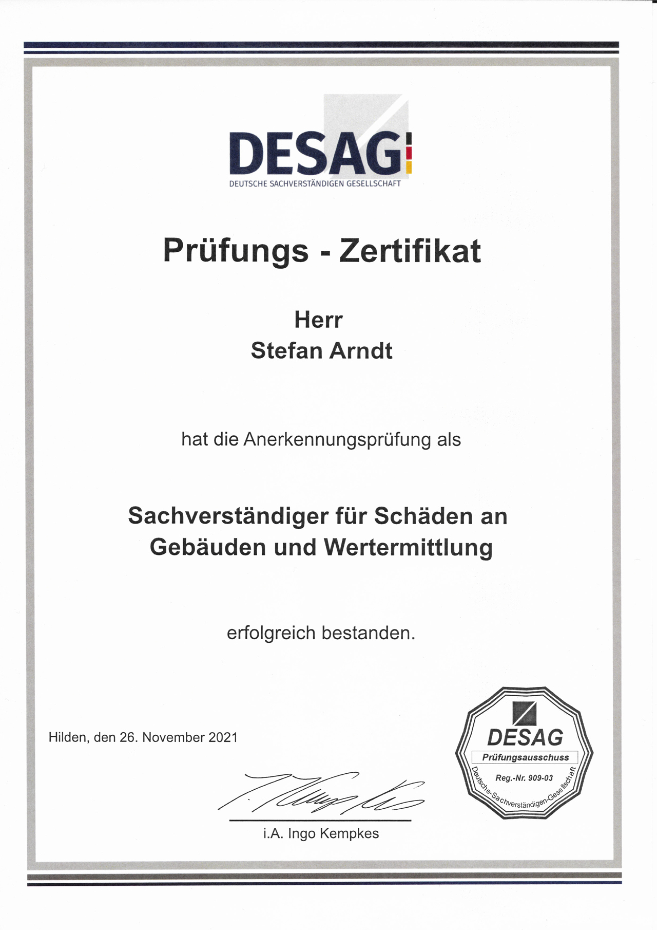 Sachverständiger für Schäden an Gebäuden und Wertermittlung